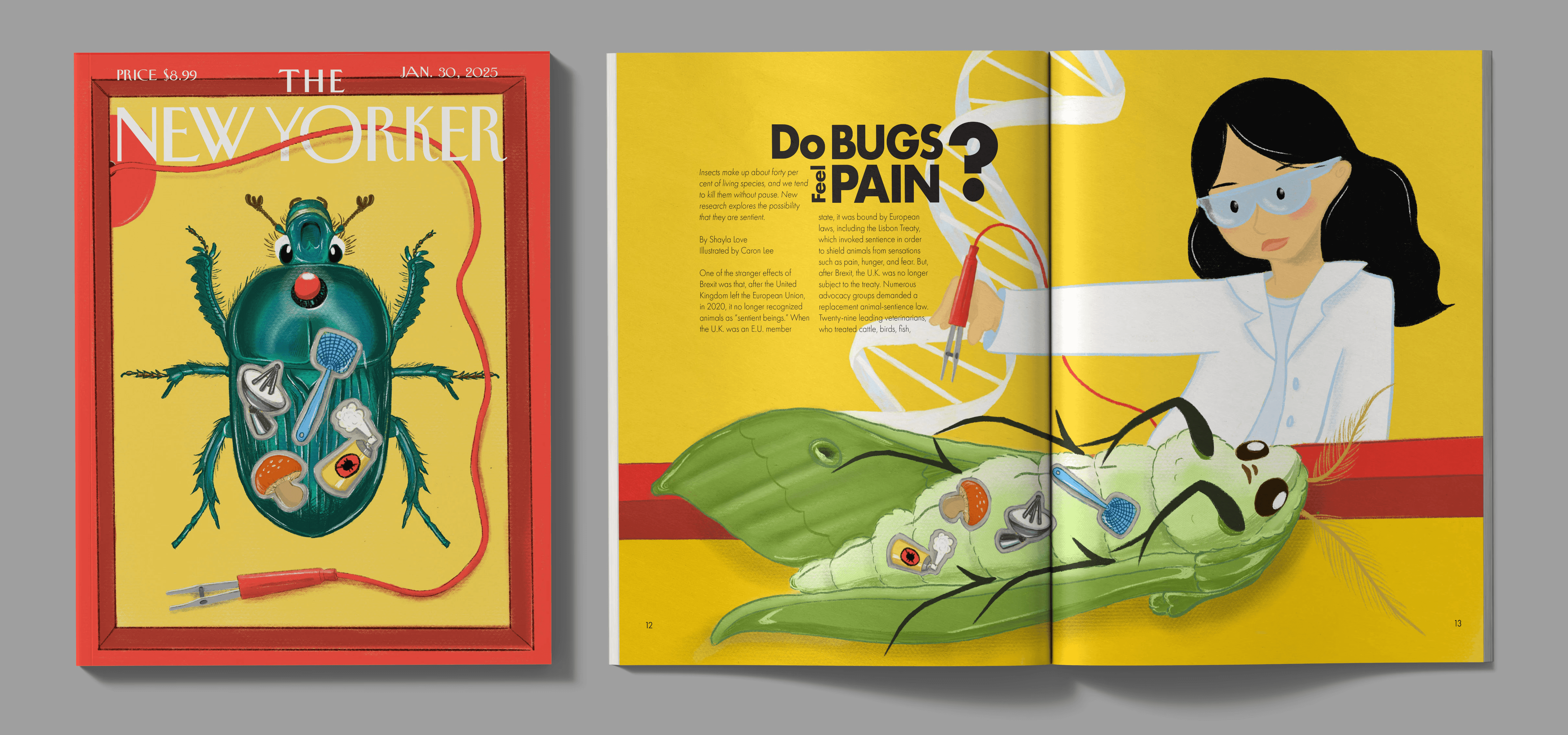 This illustration was inspired by the article "Do Bugs Feel Pain?" by Shayla Love.